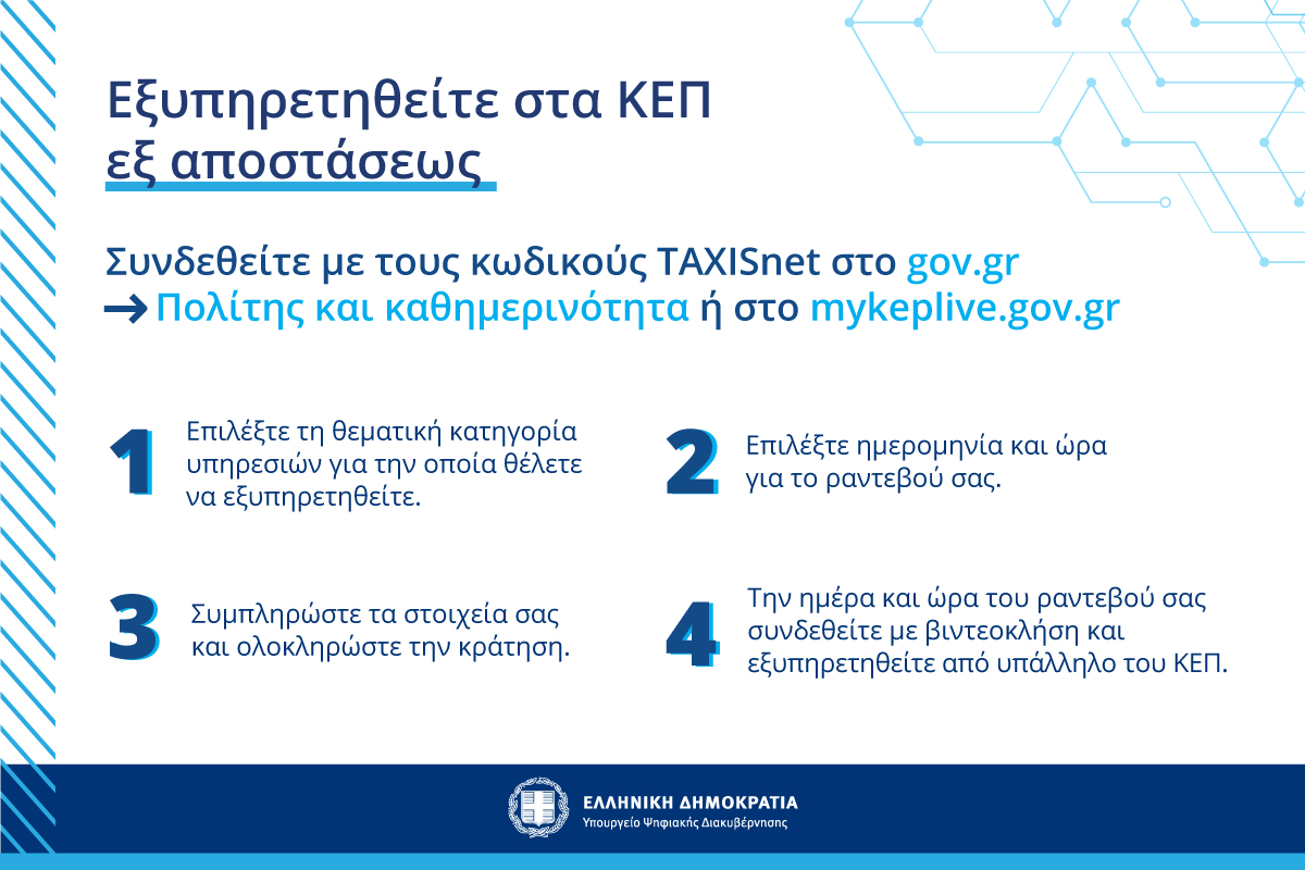 Το ωράριο λειτουργίας για όλα τα ΚΕΠ της χώρας διαμορφώνεται από 7.30 έως 15.30, Δευτέρα έως Παρασκευή. Σας ενημερώνουμε για τα κάτωθι: Σύμφωνα με την εγκύκλιο του Υπουργείου Ψηφιακής Διακυβέρνησης,…
