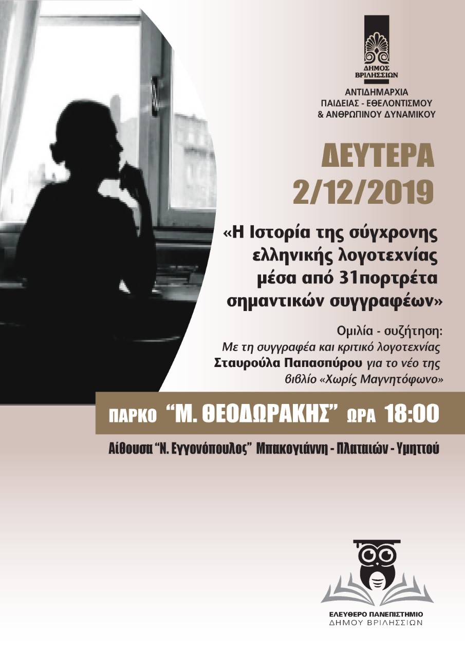 Συνεχίζονται με μεγάλη ανταπόκριση τα Σεμινάρια Αυτοβελτίωσης και Προσωπικής Ανάπτυξης μέσω του προγράμματος ¨Αναγέννηση Τώρα¨ του Οργανισμού Προστασίας και Αλληλλεγγύης του Δήμου Βριλησσίων. Επόμενη συνάντηση την Παρασκευή 6 Δεκεμβρίου στο…