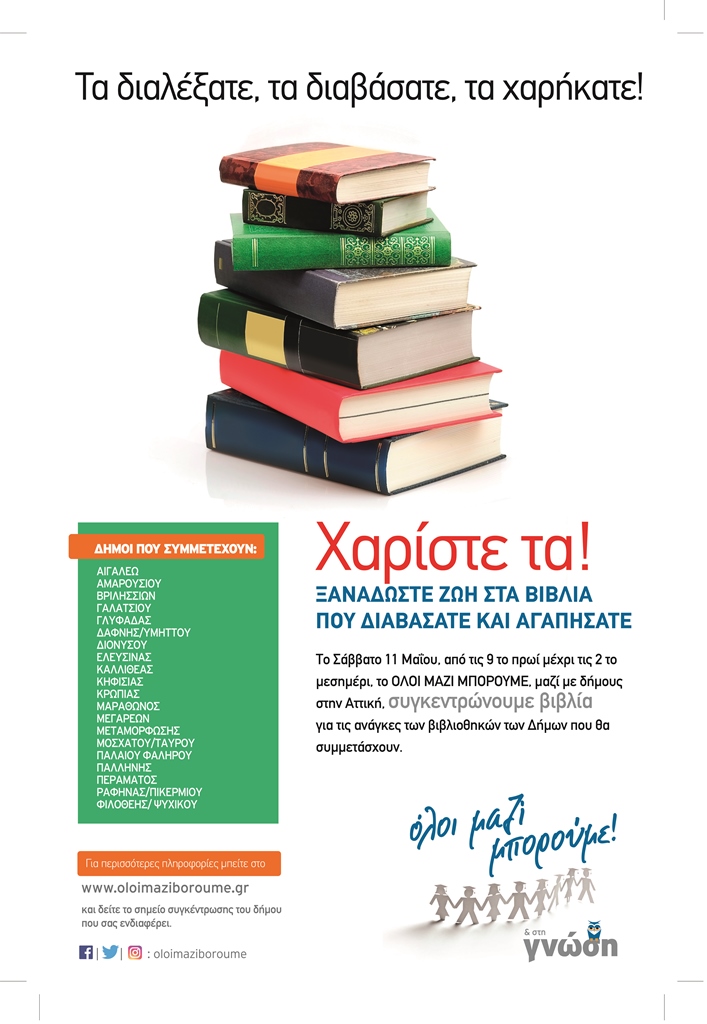Την Κυριακή 12 Μαΐου 2019 και ώρα 11.00 στο πάρκο “Μίκης Θεοδωράκης” βραβεύουμε τα σχολεία μας! Την Κυριακή 12 Μαΐου 2019 και ώρα 11:00 στην αίθουσα «Νίκος Εγγονόπουλος» στο πάρκο…