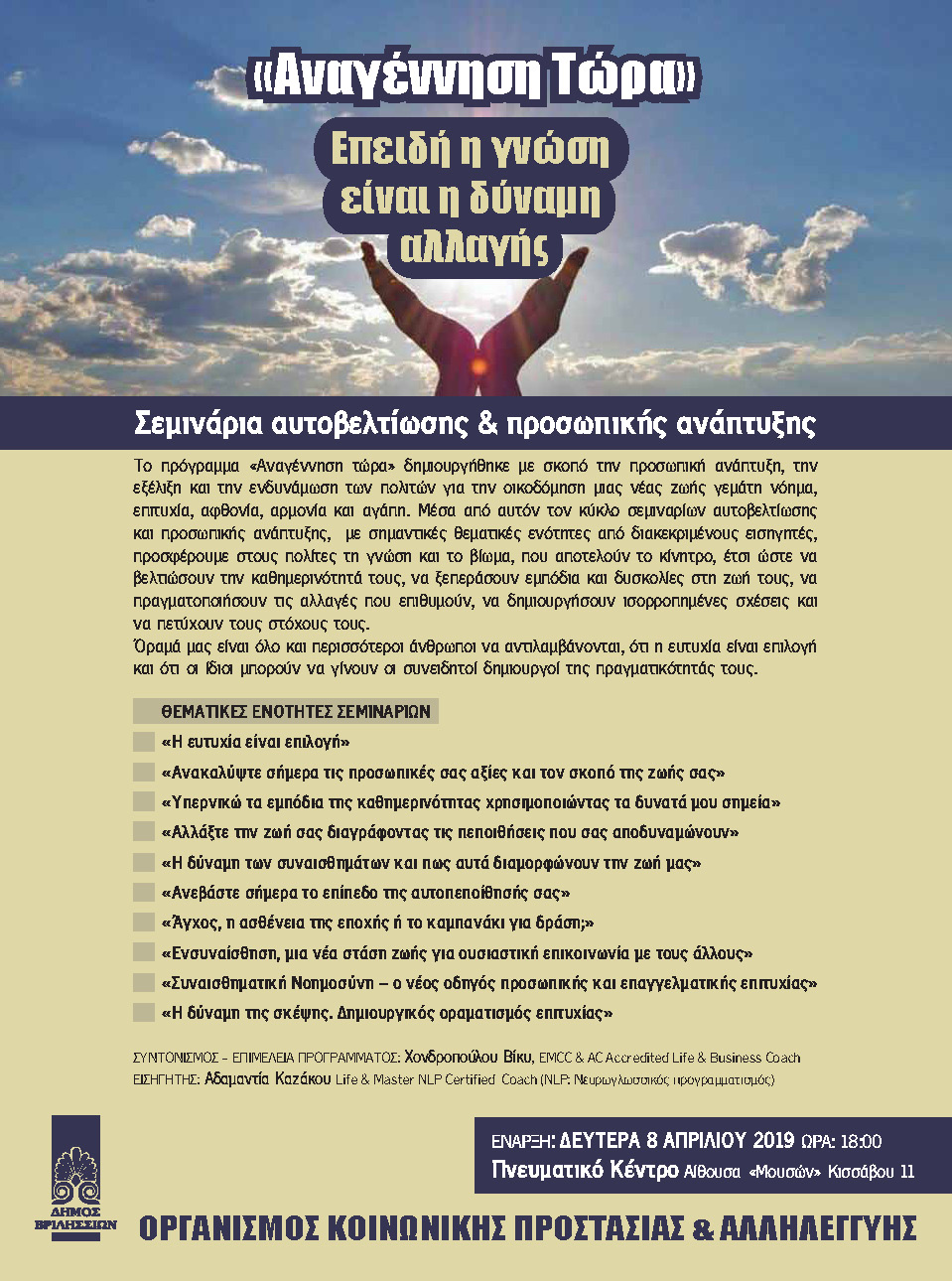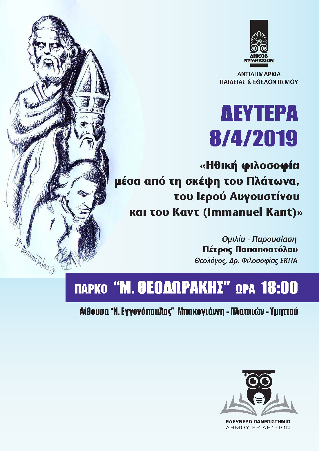 Σάββατο & Kυριακή 6-7 Απριλίου Η Πρόεδρος του Πολιτιστικού & Αθλητικού Οργανισμού του Δήμου Βριλησσίων και ο υπεύθυνος του Α΄ Εργαστηρίου Ζωγραφικής Ενηλίκων Δημήτρης Σκλείδης σας προσκαλούν στην Έκθεση…