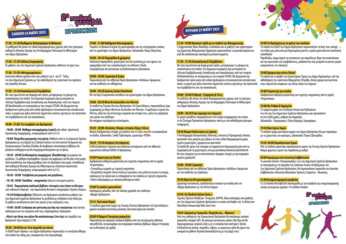 Το πρόγραμμα του 2ου Παιδικού Φεστιβάλ του Δήμου Βριλησσίων