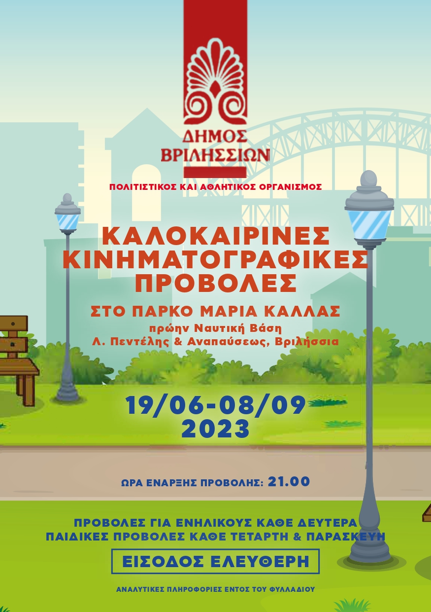 Λόγω των επικείμενων δυσμενών καιρικών φαινομένων, η αποψινή κινηματογραφική προβολή της παιδικής ταινίας “ΜΕΤΑ-ΜΟΡΦΩΜΕΝΟΙ ΠΡΑΚΤΟΡΕΣ” στο πάρκο ΜΑΡΙΑ ΚΑΛΛΑΣ (πρώην Ναυτική Βάση, Λ. Πεντέλης & Αναπαύσεως), μεταφέρεται και θα πραγματοποιηθεί το Σάββατο 9 Σεπτεμβρίου 2023, την ίδια ώρα, στον ίδιο χώρο. Η προβολή της παιδικής ταινίας “ΨΥΧΡΑ ΚΑΙ ΑΝΑΠΟΔΑ” την Παρασκευή 8 Σεπτεμβρίου, θα γίνει κανονικά, σύμφωνα με το