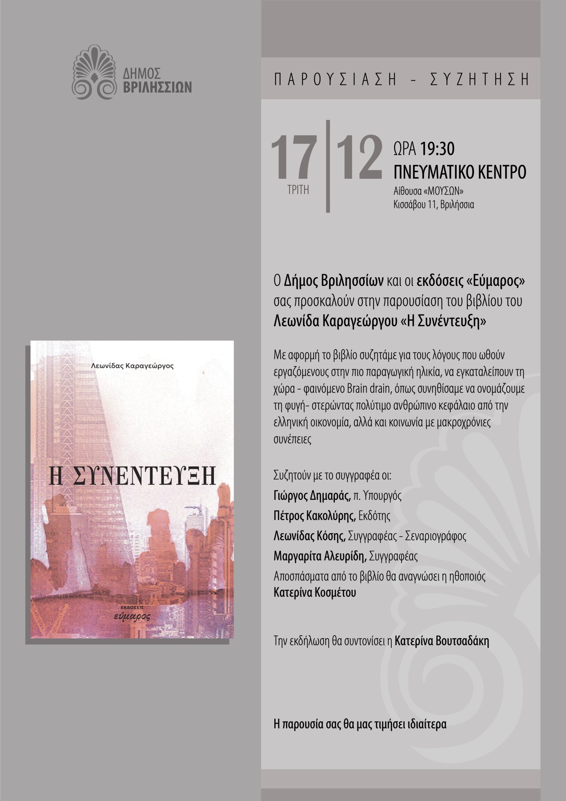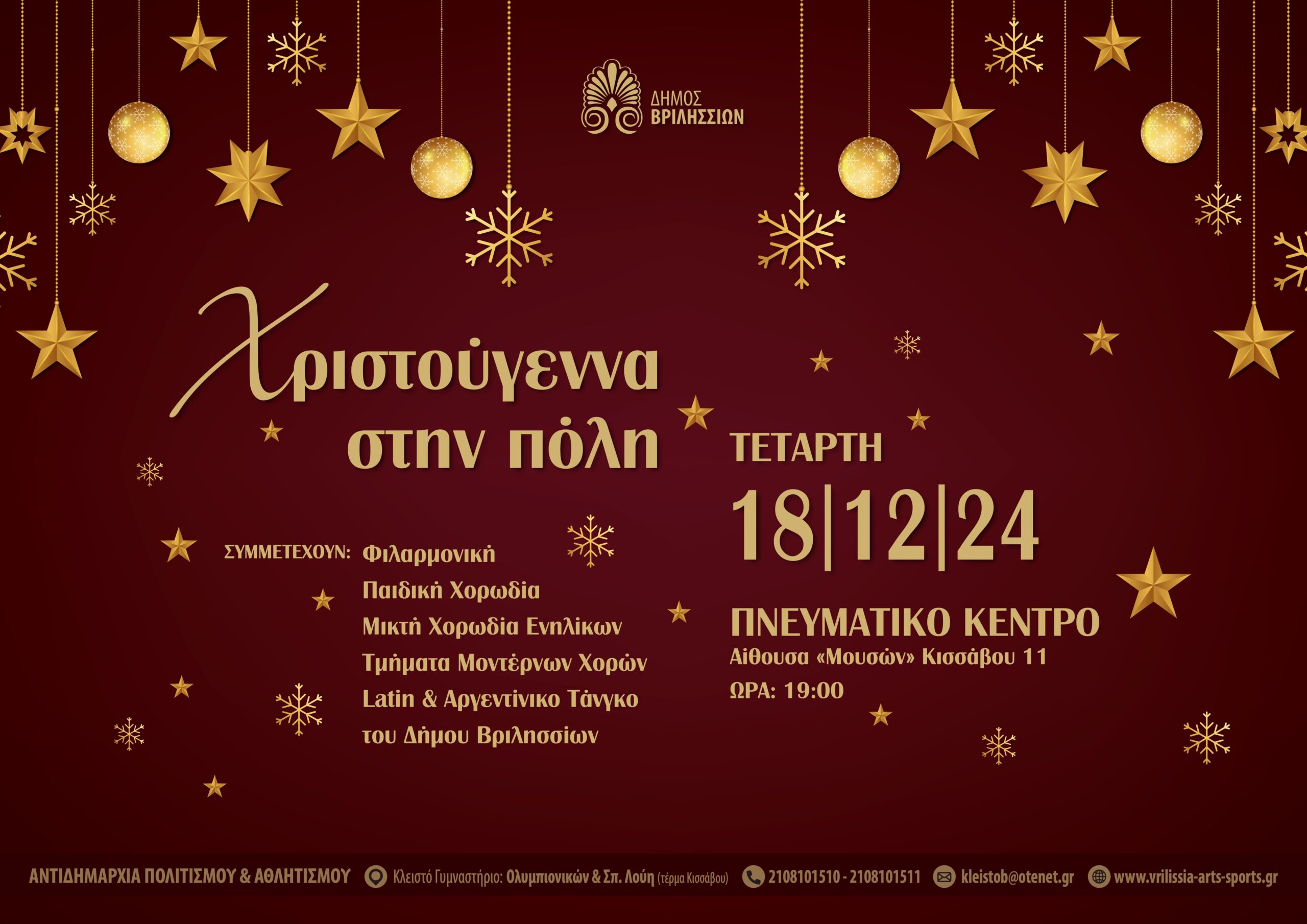 Κυριακή 1 Φεβρουαρίου ο Απολογισμός Έργου της Δημοτικής Αρχής και η κοπή της Πρωτοχρονιάτικης Πίτας του Δήμου Βριλησσίων