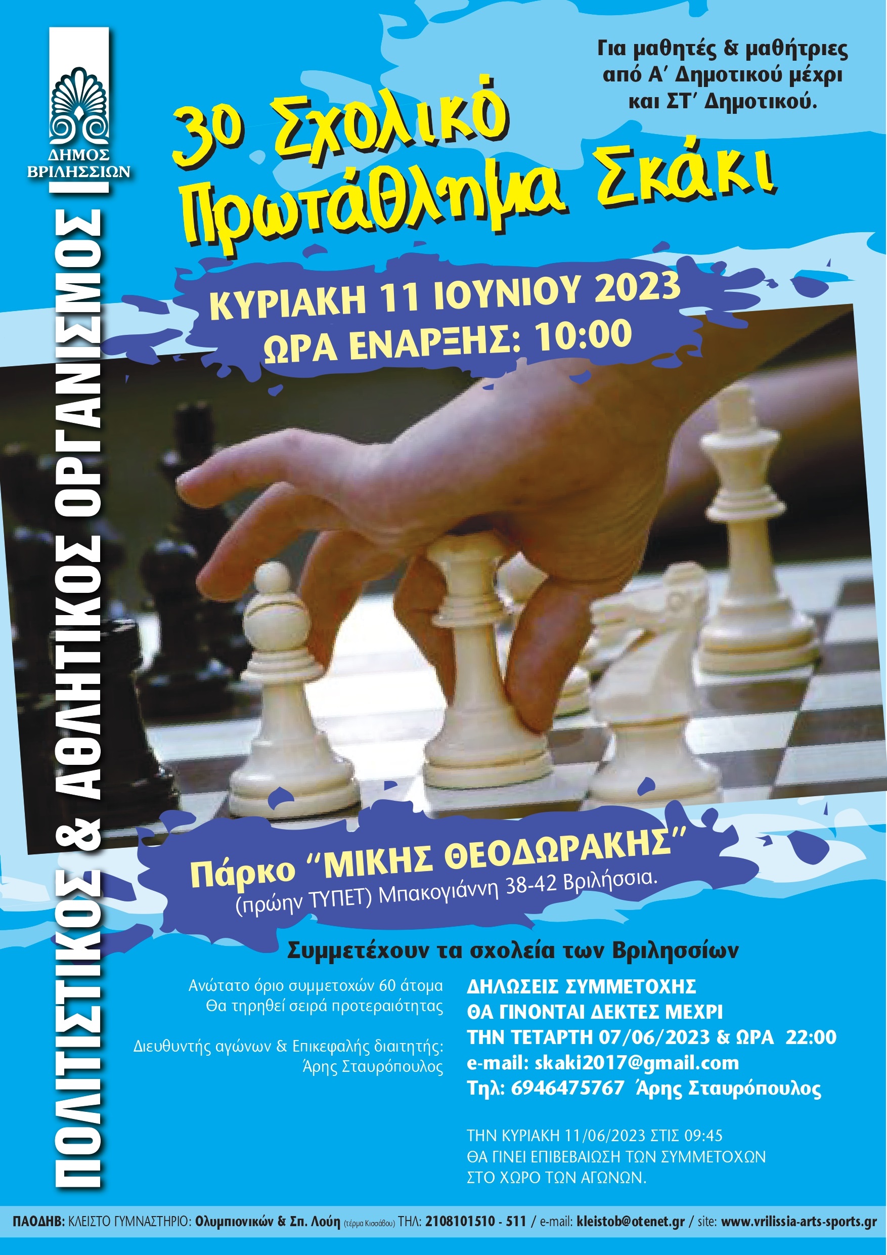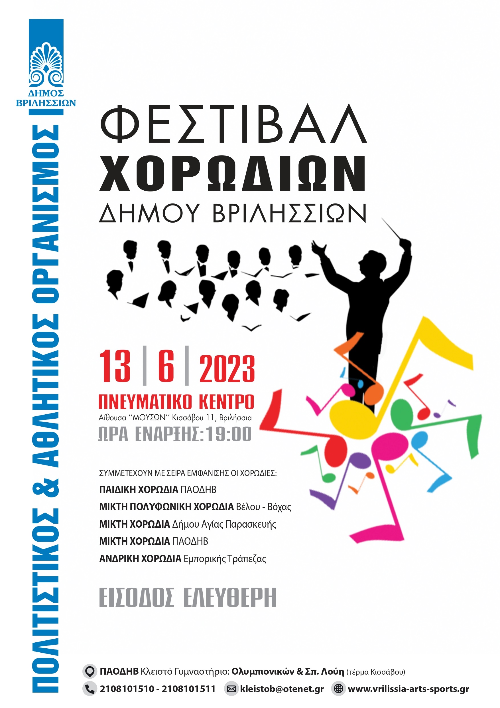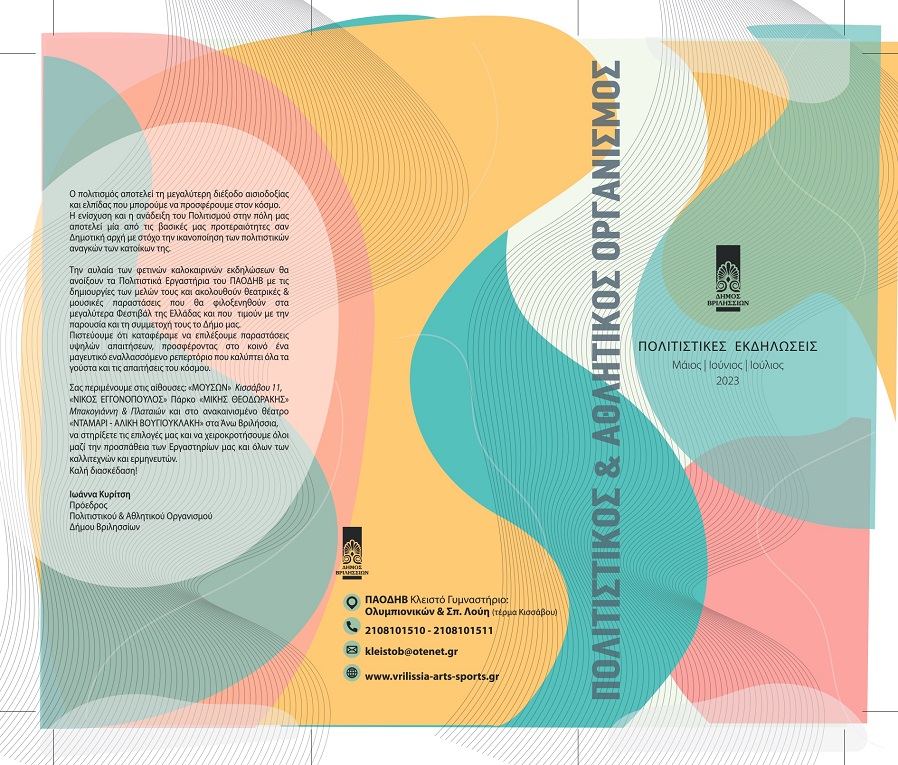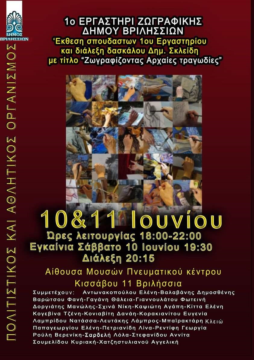ΑΝΑΚΟΙΝΩΣΗΑύριο Τετάρτη 14 Ιουνίου 2023 θα πραγματοποιηθεί στο θέατρο ΝΤΑΜΑΡΙ-ΑΛΙΚΗ ΒΟΥΓΙΟΥΚΛΑΚΗ στα Άνω Βριλήσσια, η “ΠΑΡΑΣΤΑΣΗ ΧΟΡΟΥ” που είχε αναβληθεί λόγω των δυσμενών καιρικών συνθηκών.Συμμετέχουν oι χορευτικές ομάδες του Πολιτιστικού…