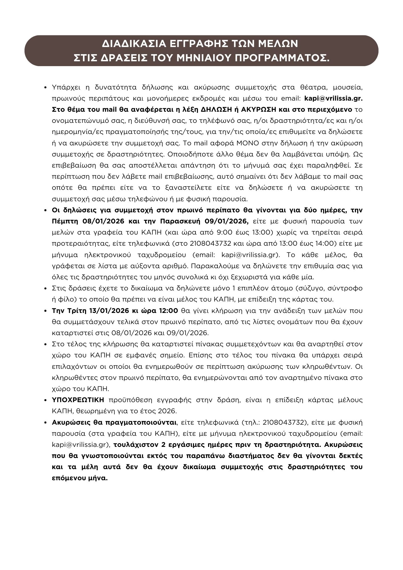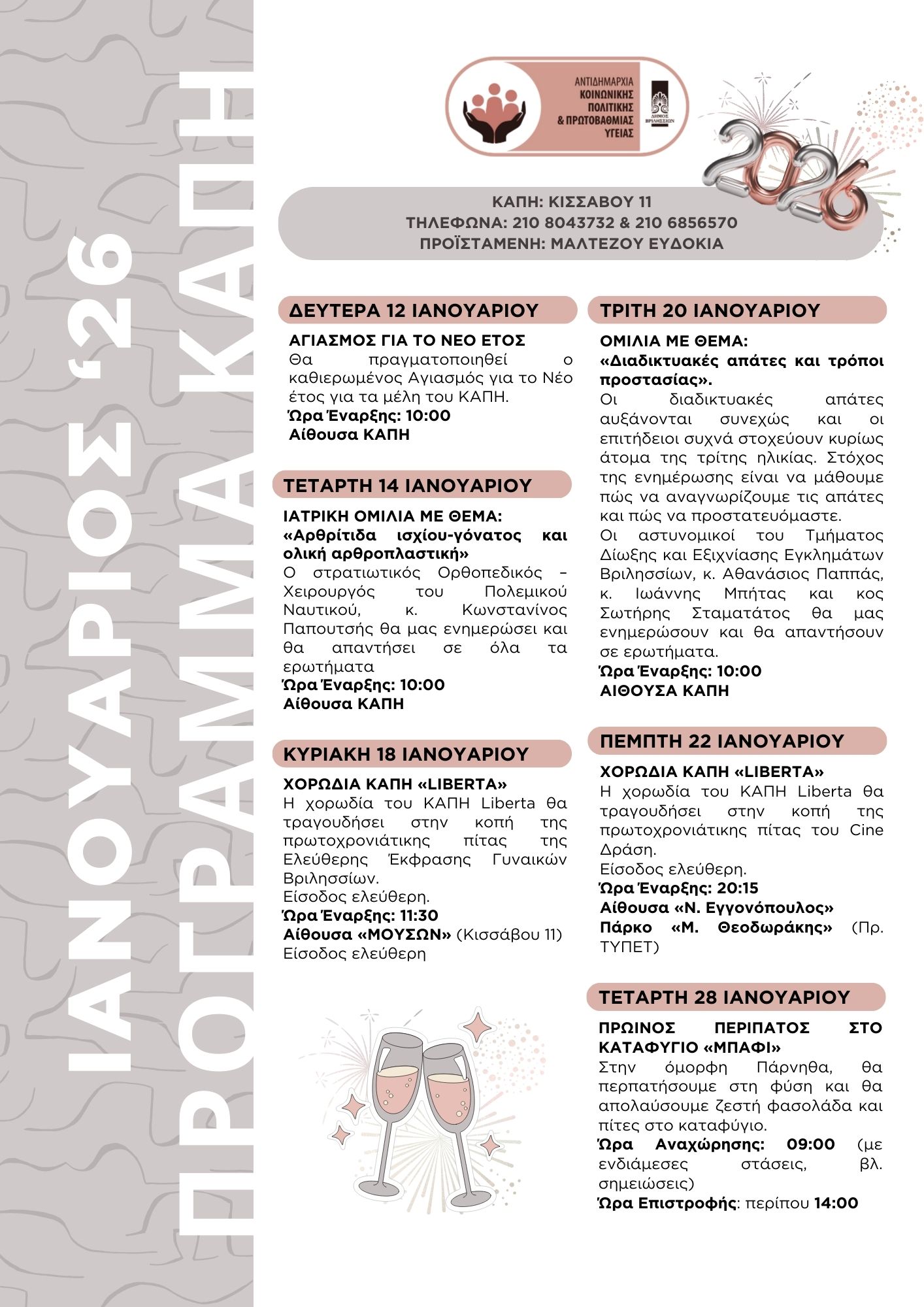 ΠΡΟΓΡΑΜΜΑ ΚΑΠΗ ΙΑΝΟΥΑΡΙΟΣ 2026