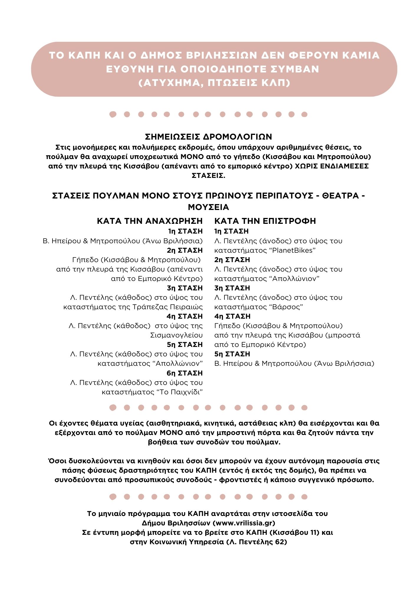 Πρόγραμμα ΚΑΠΗ για το μήνα Απρίλιο