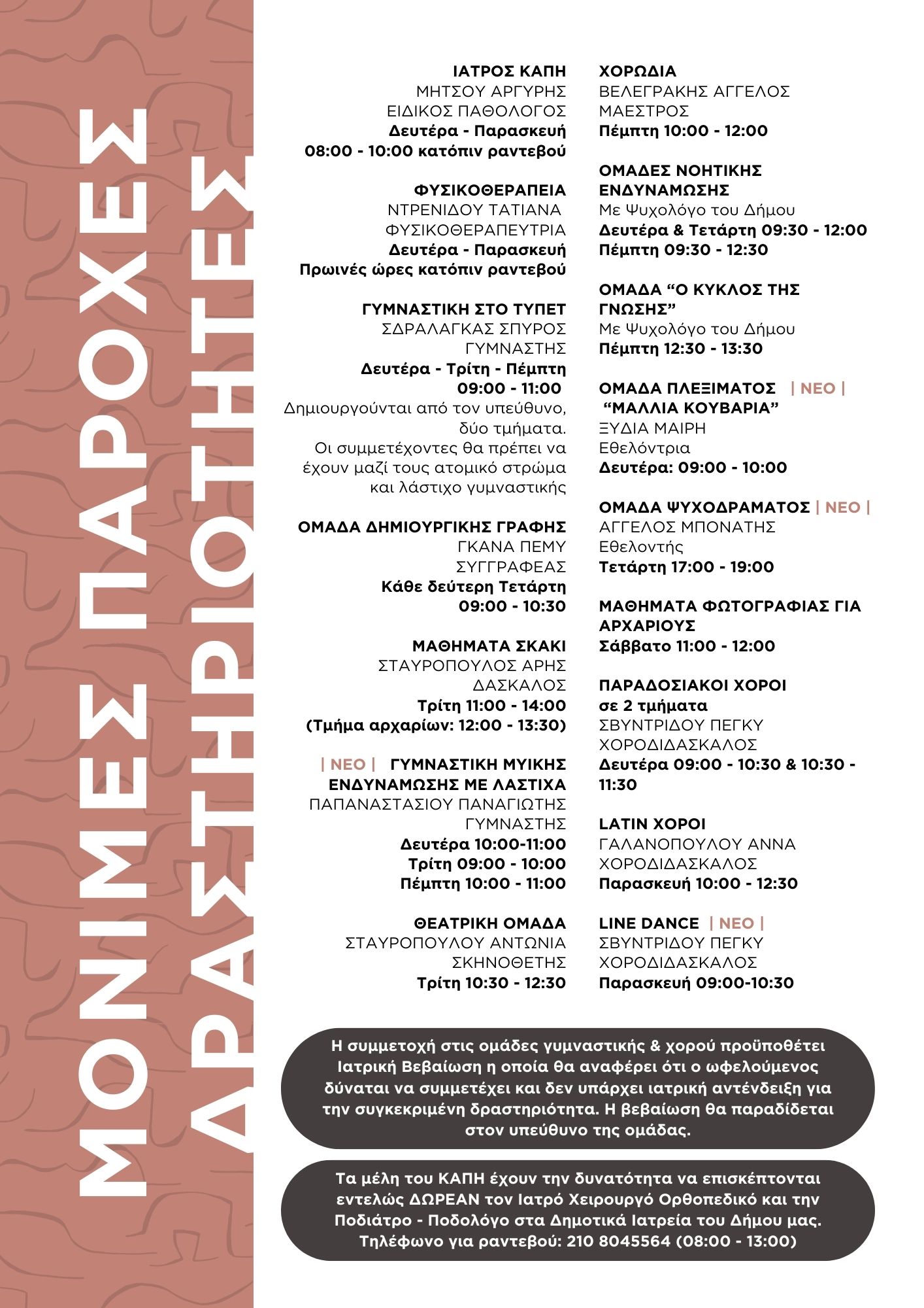 Πρόγραμμα ΚΑΠΗ για το μήνα Οκτώβριο 2025