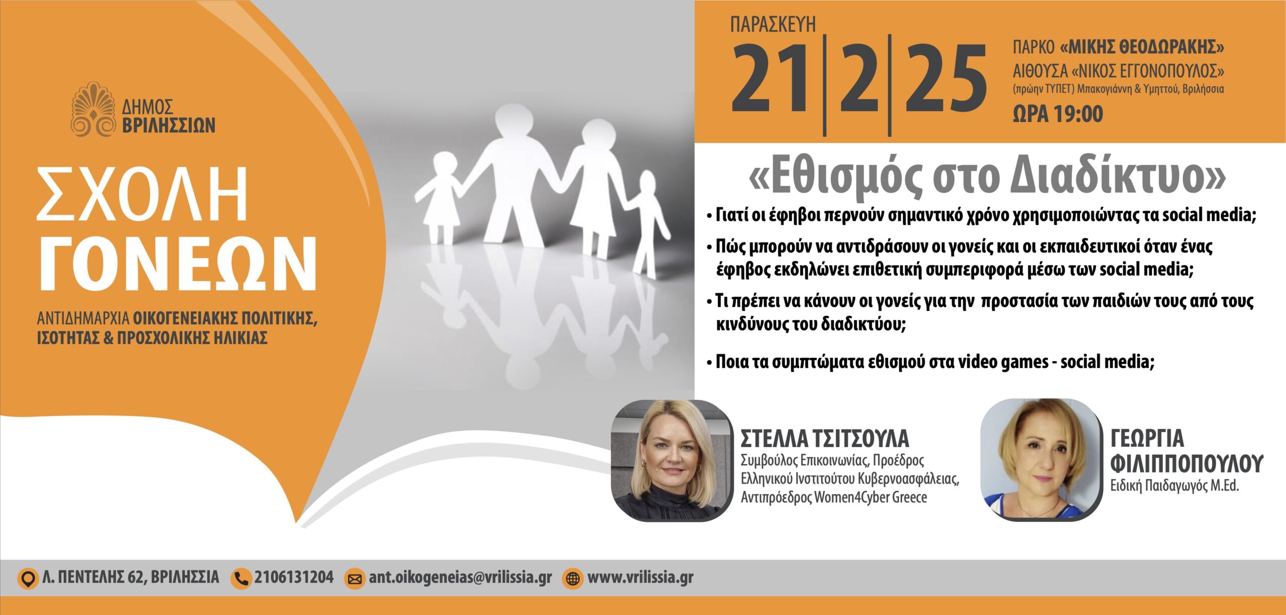 Η Επιτροπή Ισότητας του Δήμου Βριλησσίων σας προσκαλεί να συμμετάσχετε στον εορτασμό της Παγκόσμιας Ημέρας της Γυναίκας, που θα πραγματοποιηθεί στις 8 Μαρτίου 2025, στις 19:00, στην αίθουσα «Ν. Εγγονόπουλος»…