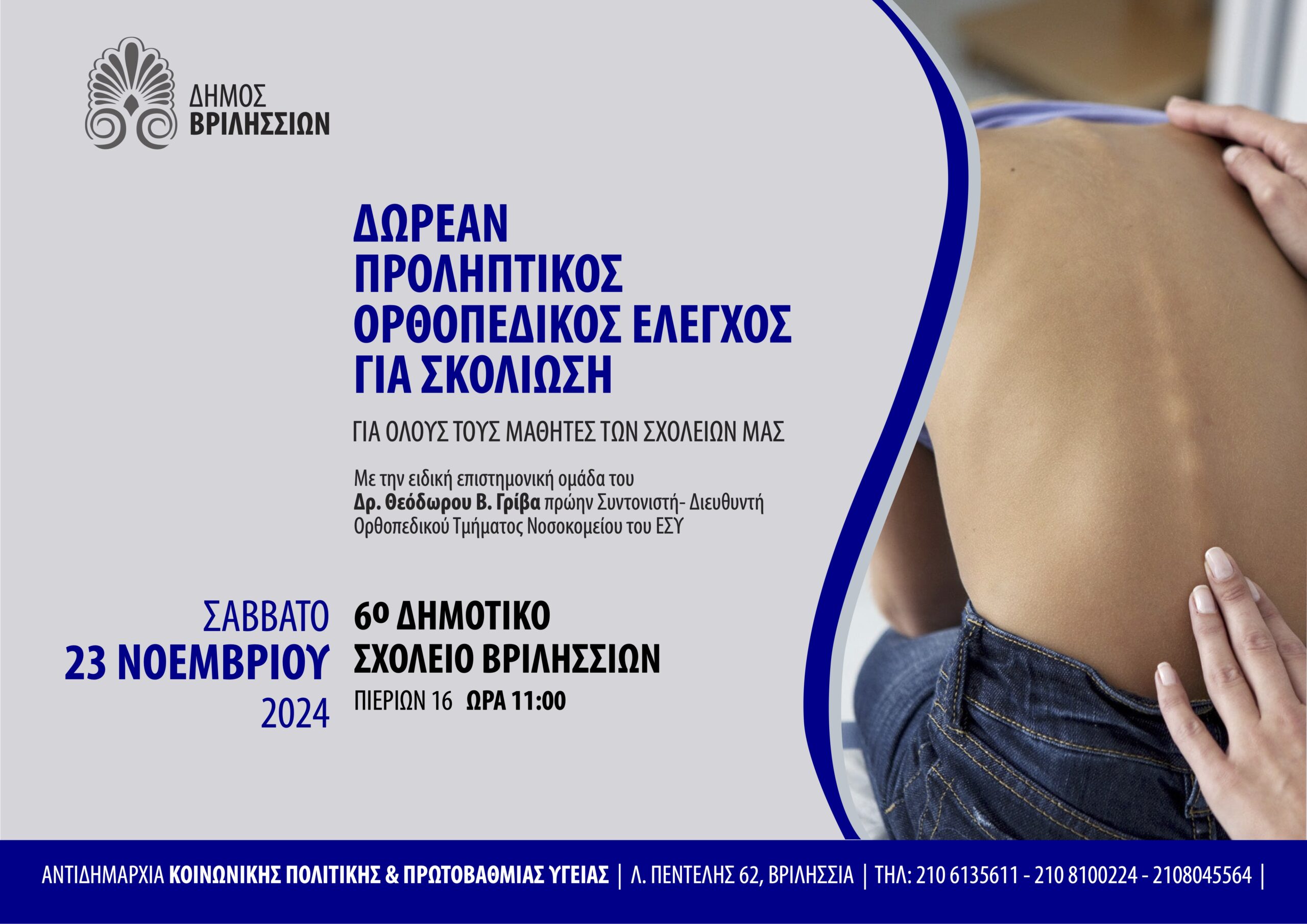 Προληπτικός ορθοπεδικός έλεγχος για σκολίωση στο 6ο Δημοτικό Σχολείο Βριλησσίων