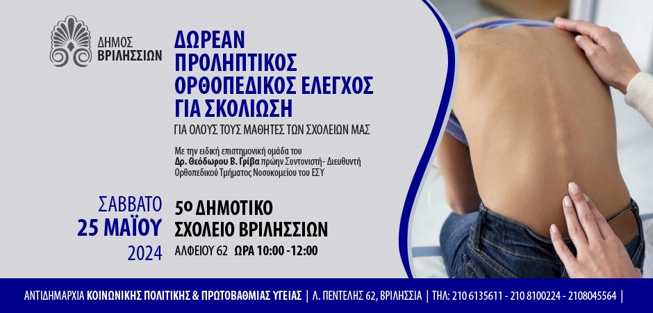 Προληπτικός ορθοπεδικός έλεγχος για σκολίωση στο 5ο Δημοτικό Σχολείο Βριλησσίων