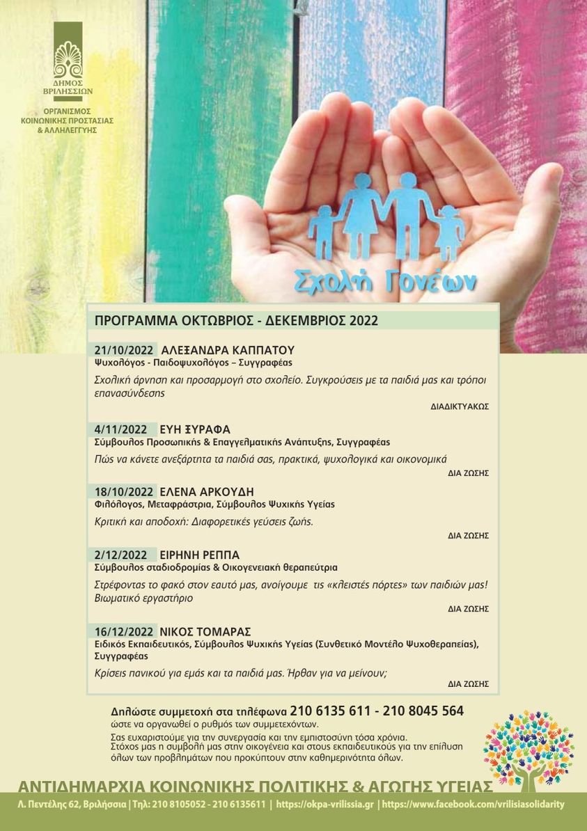 Έναρξη Σχολής Γονέων για 8η συνεχή χρονιά στον Δήμο Βριλησσίων