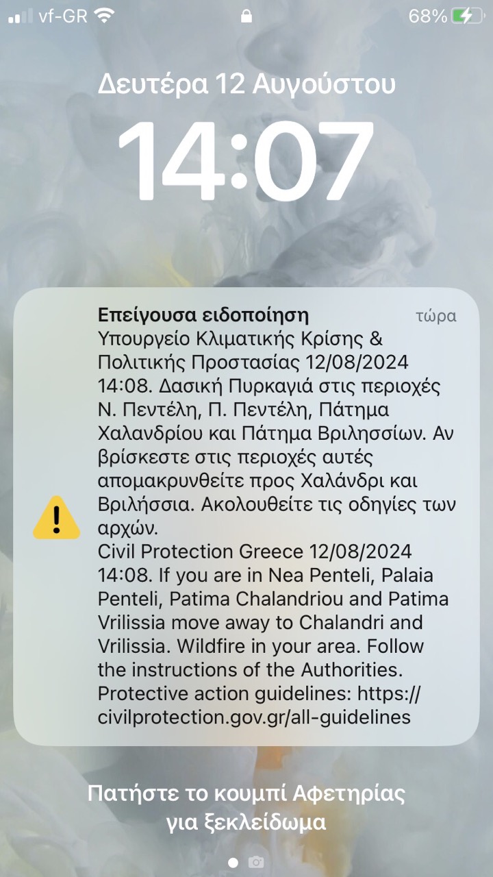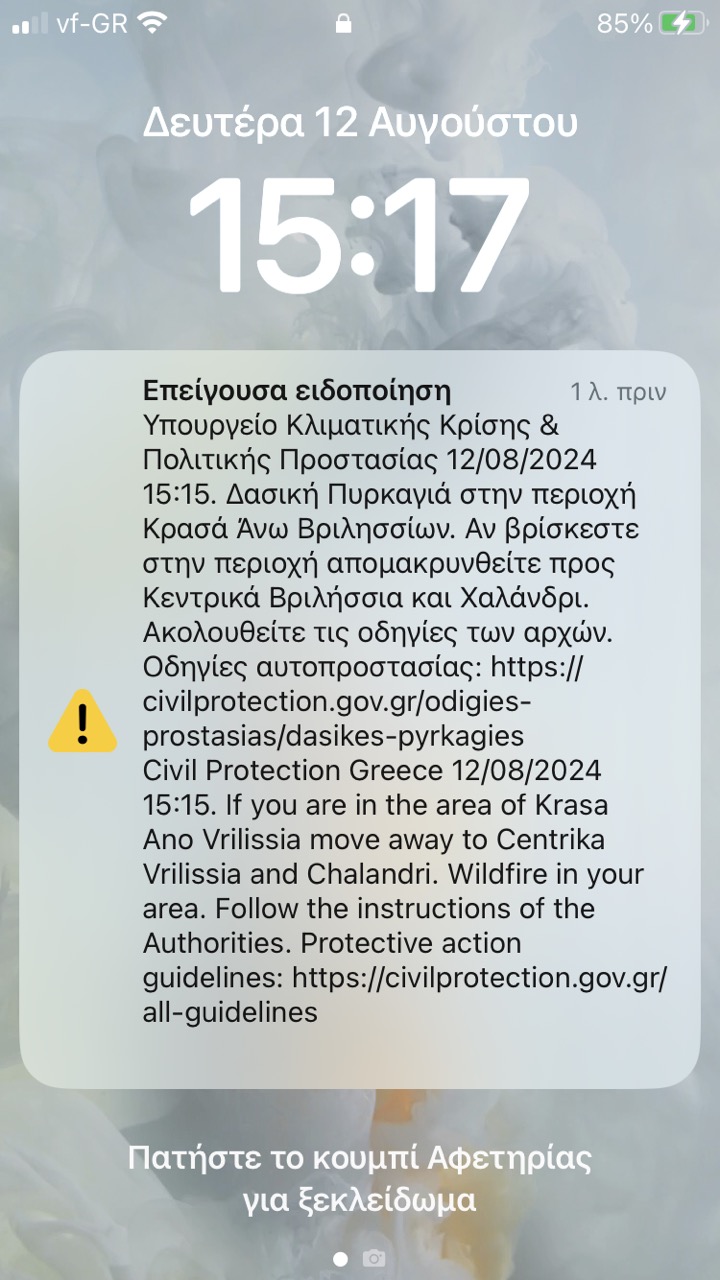 Eντολή εκκένωσης από την Γενική Γραμματεία Πολιτικής Προστασίας όσοι συμπολίτες μας βρίσκονται στο Πάτημα Βριλησσίων καλούνται να εγκαταλείψουν άμεσα την περιοχή προς Βριλήσσια και Χαλάνδρι.