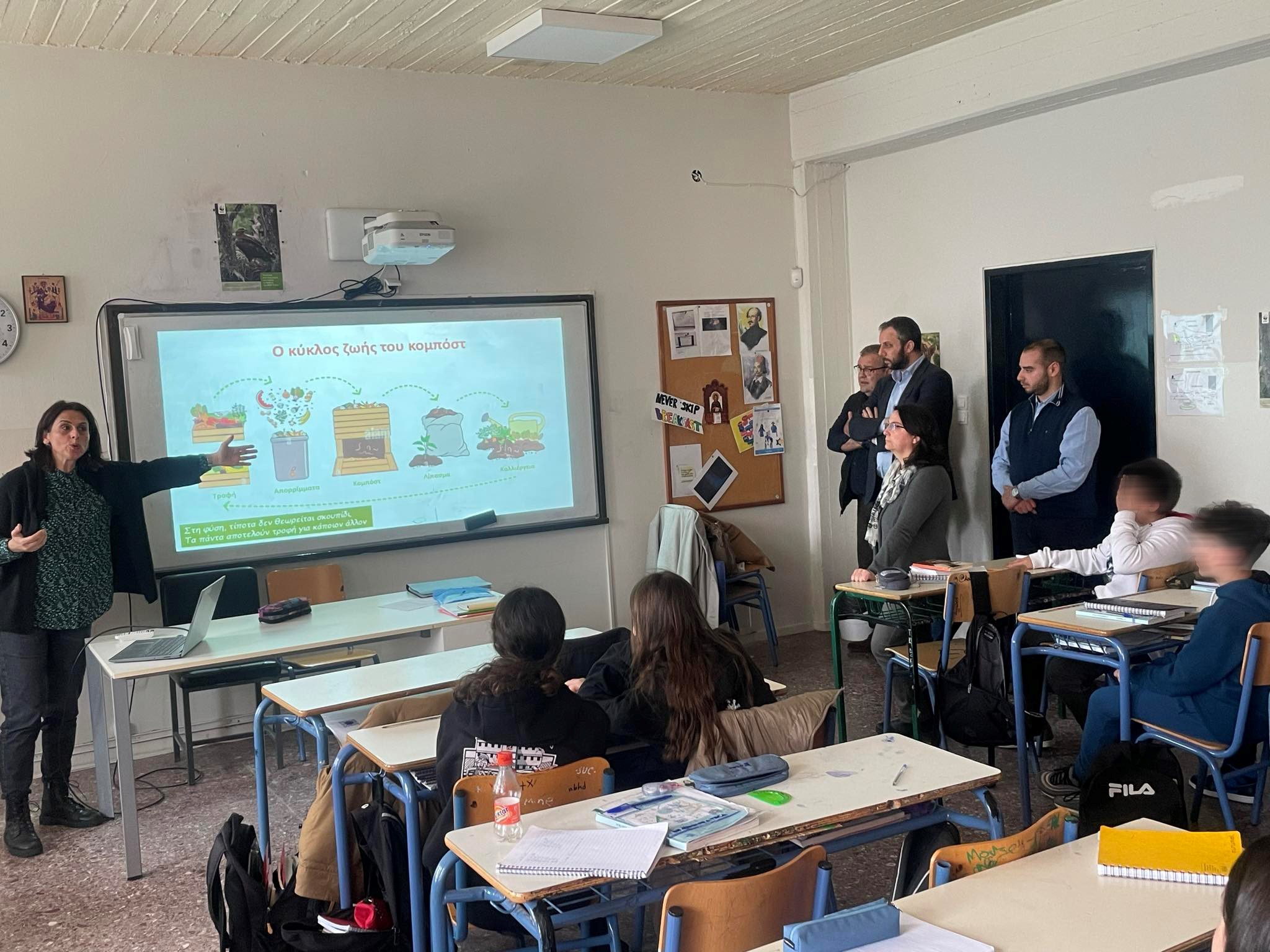 Ο Δήμαρχος Βριλησσίων Γιάννης Πισιμίσης βρέθηκε το πρωί της Πέμπτης 29/2 στο 1ο Γυμνάσιο της πόλης μας και μαζί με τους Αντιδημάρχους Παιδείας Χ. Γούναρη και Καθαριότητας Γ. Μαρίνη, αλλά και στελέχη της Υπηρεσίας Καθαριότητας είχαν την ευκαιρία να μιλήσουν στους μαθητές για τη συλλογή οργανικών αποβλήτων που θα μετατρέπονται σε κομπόστ στο σχολείο τους. Η κομποστοποίηση στα σχολεία συνιστά μια μοναδική ευκαιρία για βιωματική μάθηση. Τον Δήμαρχο υποδέχθηκε η Διευθύντρια του 1ου Γυμνασίου Βριλησσίων κα. Ευαγγελία Σύρμα, ενώ τα παιδιά με τις εύστοχες ερωτήσεις τους έδειξαν ιδιαίτερο ενδιαφέρον για τα οφέλη της κομποστοποίησης.