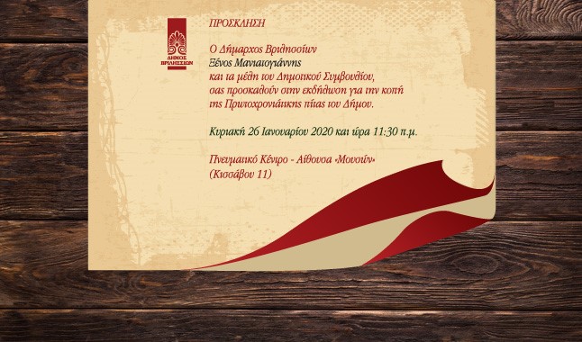 Πρόσκληση στην εκδήλωση της Πρωτοχρονιάτικης πίτας του Δήμου Βριλησσίων